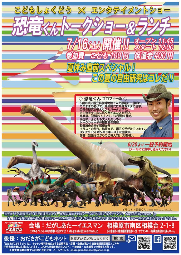 だがしあたーイエスマン『こどもしょくどう×エンタテイメントショー "恐竜くんトークショー&ランチ"』