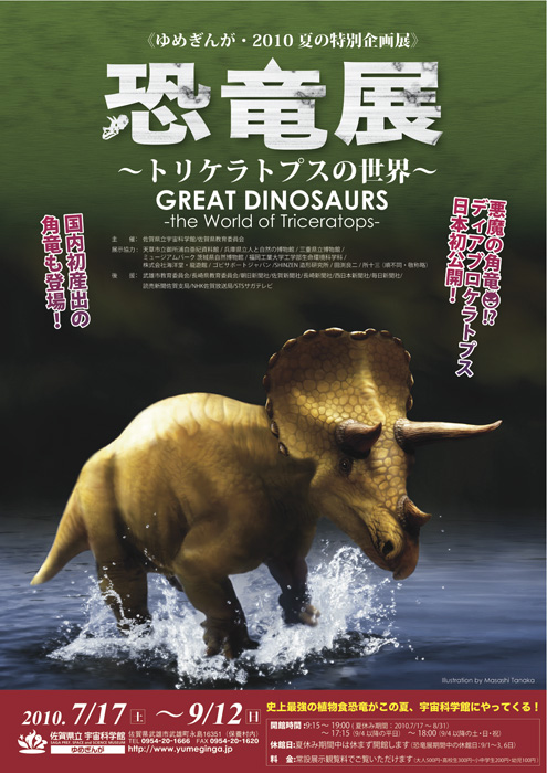 本展では、私が恐竜展総合プロデューサーということで、企画・総監修を担当させていただいたほか、上記ポスターイラストも制作いたしました。これまで、いくつかの恐竜展に一スタッフとして参加することはありましたが、これほど本格的に任せていただいたのは、今回が初めてとなります。