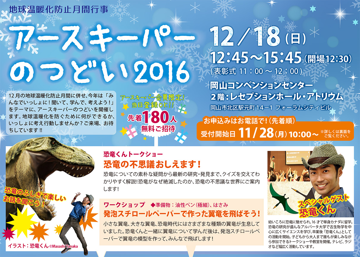12/18(日)岡山県アースキーパーのつどい『恐竜くんトークショー&ワークショップ』